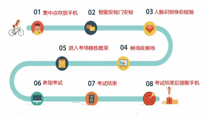 3.建议至少提前1.5小时到达考点,为手机存放、智能安全检查、入场身份核验等入场环节预留充足时间。