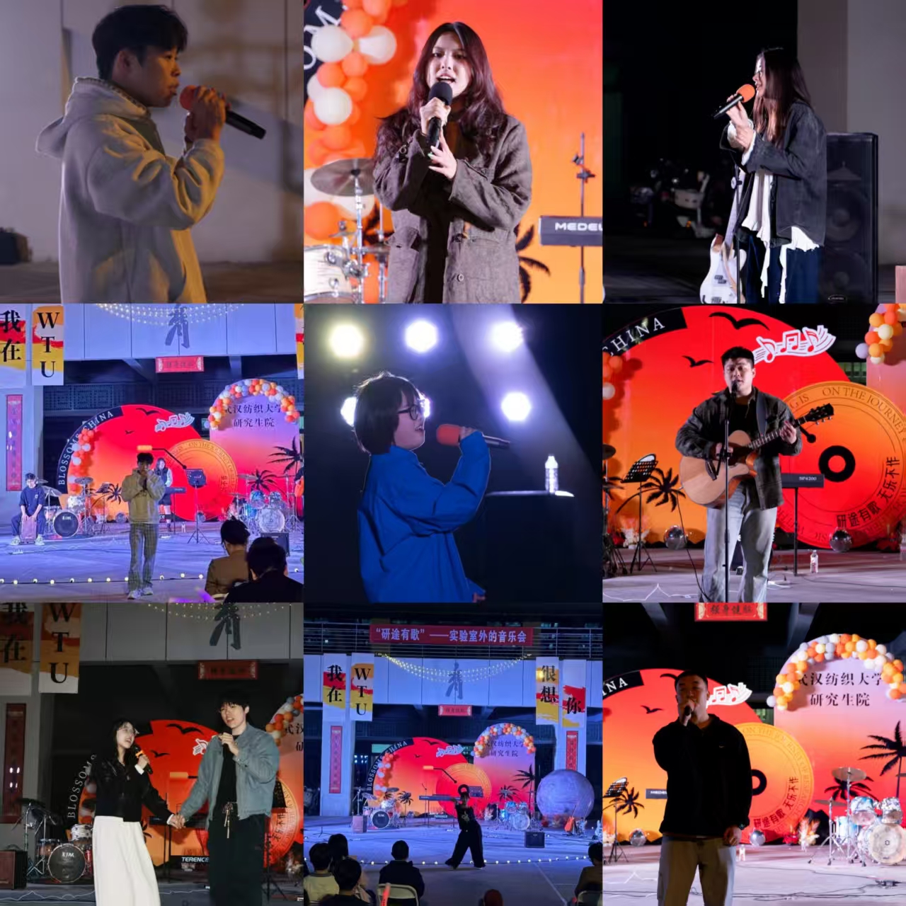 2025年11月3日晚,由武汉纺织大学研究生院、研究生工作部主办的“研途有歌”实验室外音乐会在体育馆前广场顺利举行。本次活动以音乐为媒介,旨在丰富研究生校园文化生活,缓解科研压力,展现我校研究生积极向上、全面发展的精神风貌。
