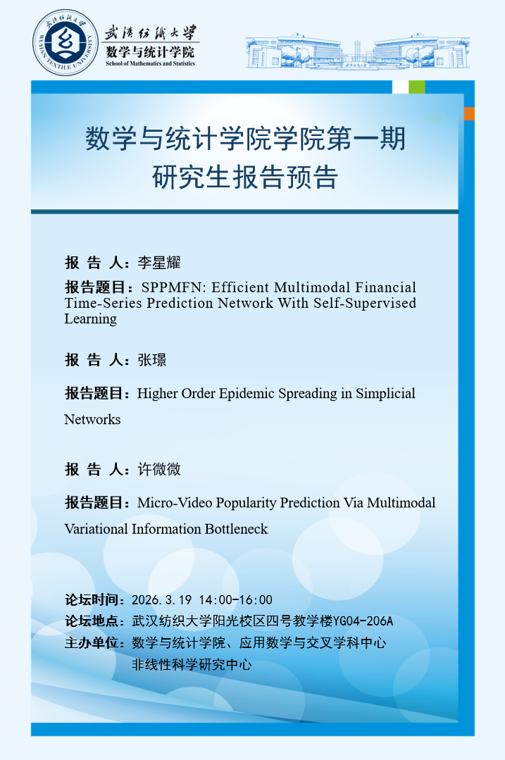 学术预告:第1083期研究生学术论坛暨数学与统计学院2026年第1期研究生学术论坛