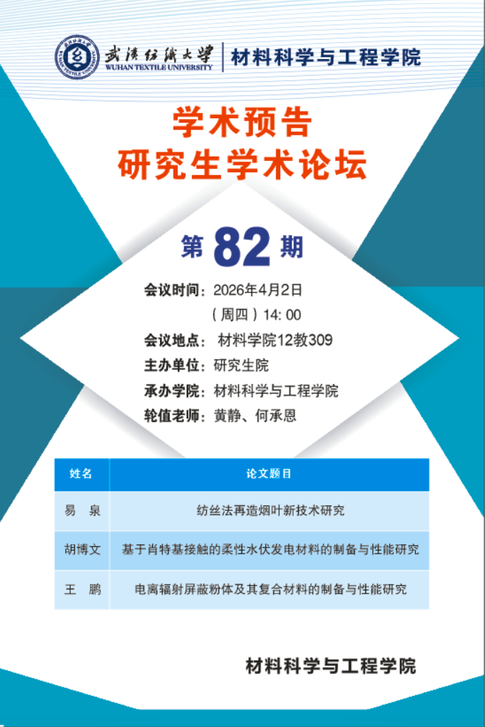 学术预告:第1100期研究生学术论坛暨材料科学与工程学院2026年第4期研究生学术论坛