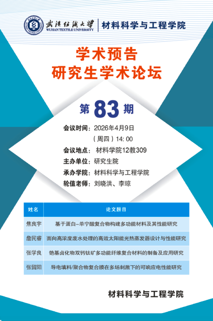 学术预告:第1109期研究生学术论坛暨材料科学与工程学院2026年第5期研究生学术论坛