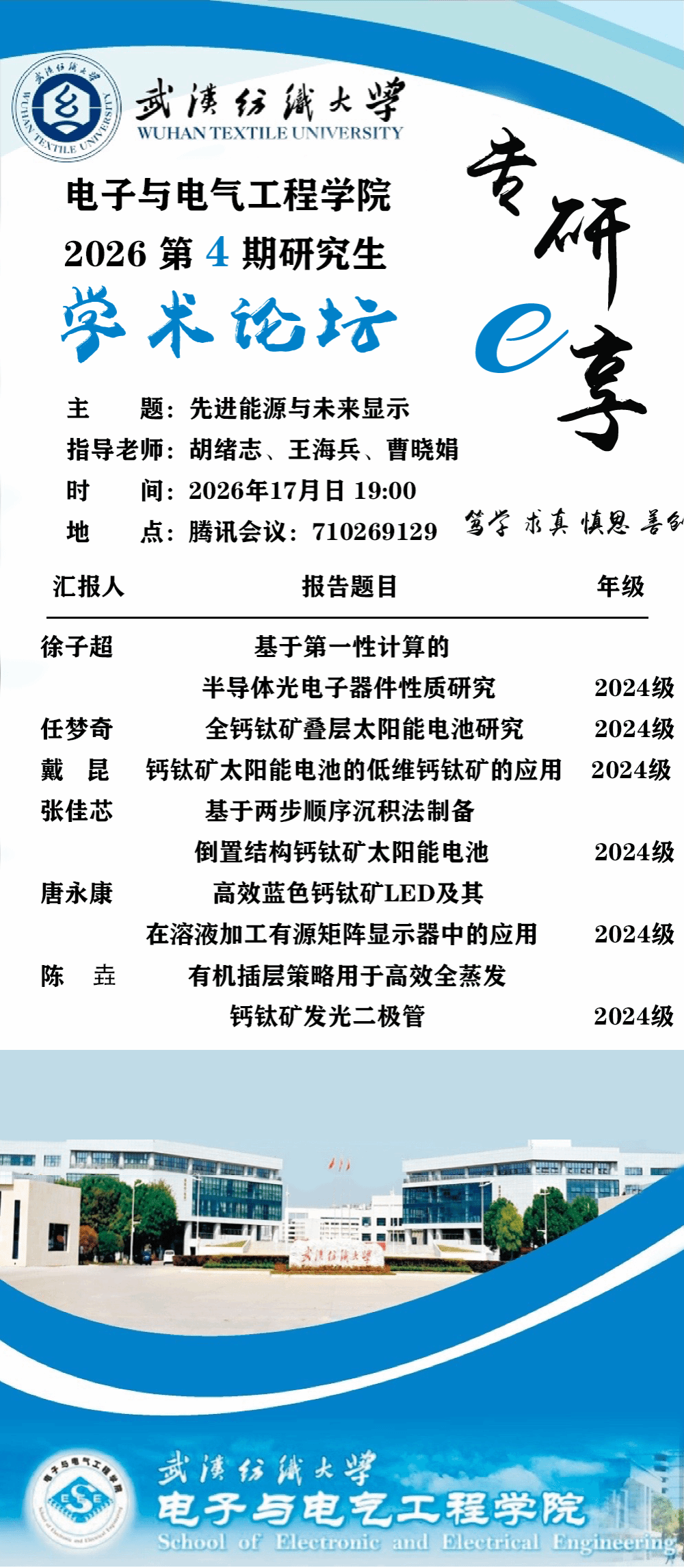 学术预告:第1121期研究生学术论坛暨电子与电气工程学院2026年第4期研究生学术论坛