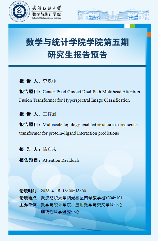 学术预告:第1128期研究生学术论坛暨数学与统计学院2026年第5期研究生学术论坛