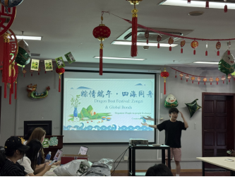 活动伊始,主持人以生动有趣的语言,向在场师生介绍了端午节的起源、历史传说及传统习俗。从屈原投江的爱国故事,到赛龙舟、挂艾草、佩香囊等民俗活动,留学生们听得津津有味,纷纷感叹中华文化的深厚底蕴。