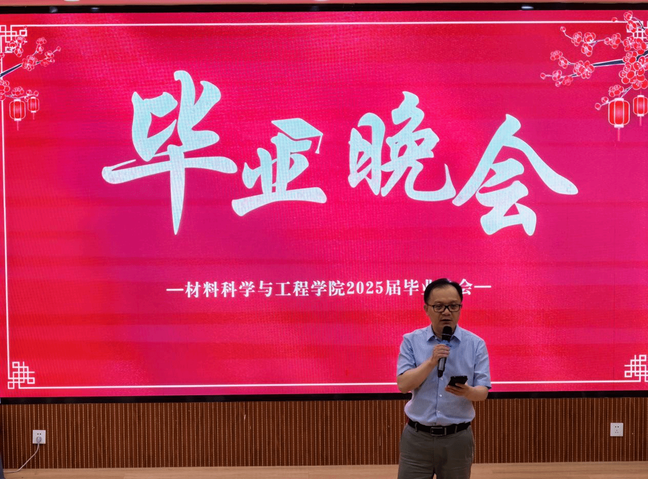 2025年6月11日,材料学院2025届毕业晚会在07-T301隆重举行。学院党委书记王罗新、执行院长杨应奎、学生工作负责人、各系主任及辅导员,2025届本科毕业生、研究生毕业生参加活动。学院以旋律为笔、热爱为墨,为毕业生书写送别诗,亦勾勒新程序章。